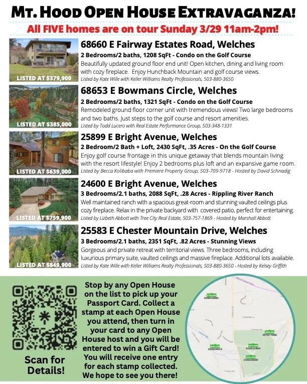 #MtHoodOpenHouse #WelchesOregon #MountainLiving #OpenHouseExtravaganza #OregonHomes #PDXRealEstate #TreeCityRealEstate #MtHoodVillage